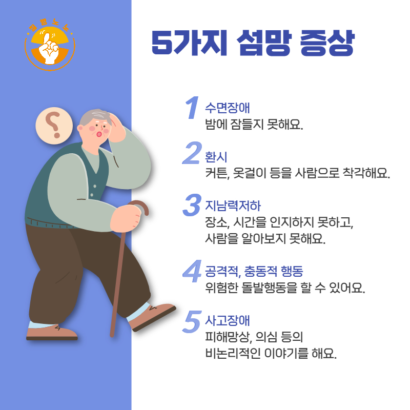 섬망이 치매로 발전할 가능성도 있다는 연구 결과가 있습니다. 일시적인 증상이라고 방치하면 나중에 돌이킬 수 없는 인지 기능 저하로 이어질 수 있다는 것이죠. 그래서 어르신이 갑자기 횡설수설하거나, 평소와 다른 이상 행동을 보이면 반드시 병원 진료를 받아야 합니다.